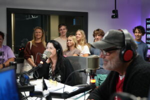 The day began with an exclusive opportunity to sit in with WRMF’s THE KVJ Show, where students experienced the fast-paced energy of a live morning broadcast. Watching the team in action gave them a front-row seat to the creativity, timing, and teamwork that make great radio happen.
